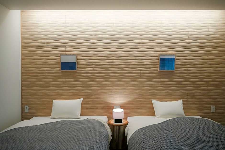 The spacious twin room provides air conditioning, tatami, as well as a private bathroom featuring a bath and a shower. The unit offers 2 beds and 3 futons.